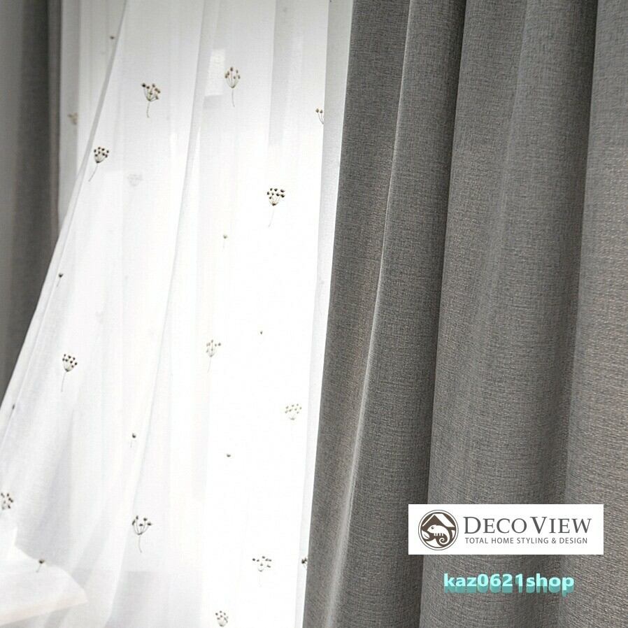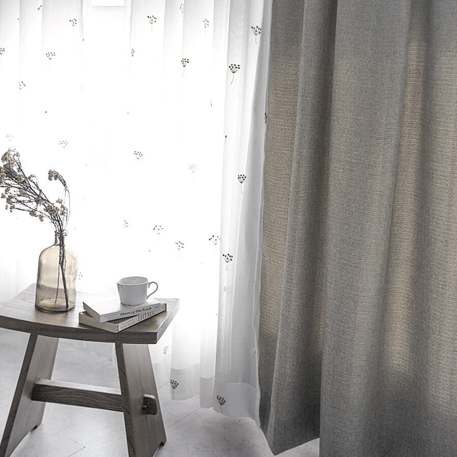 カスミソウの刺繍の内カーテンとナチュラルなグレーの