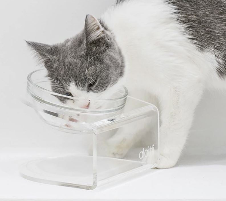 クリアに澄んだガラスボールとアクリルの台でできたおしゃれで使いやすいペット用テーブルです。