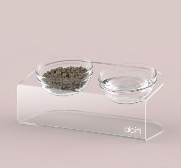 クリアに澄んだガラスボールとアクリルの台でできたおしゃれで使いやすいペット用テーブルです。