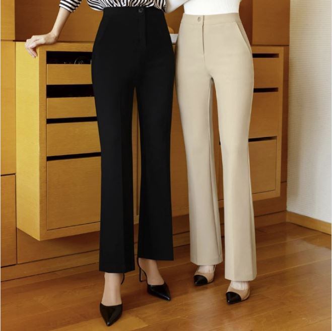 商品名 ボーワン ブーツカットパンツ ベージュ ブラック スラックス 形状安定素材 かっこいい 着こなし 大人の女性 カジュアル エレガント フェミニン S M L XL XXL